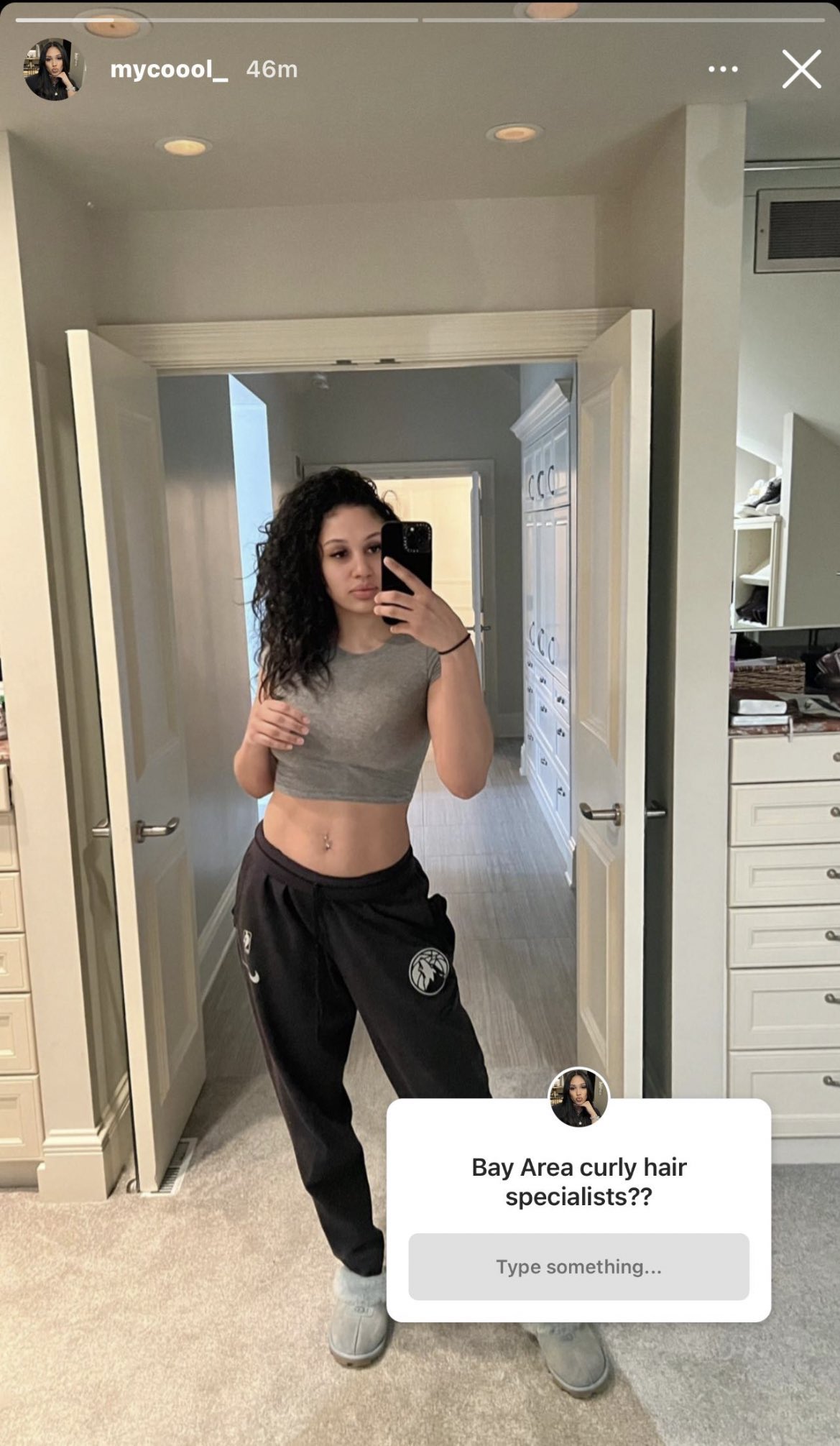 维金斯老婆晒出了自拍,并询问湾区有没有卷发专攻的好Tony老师。