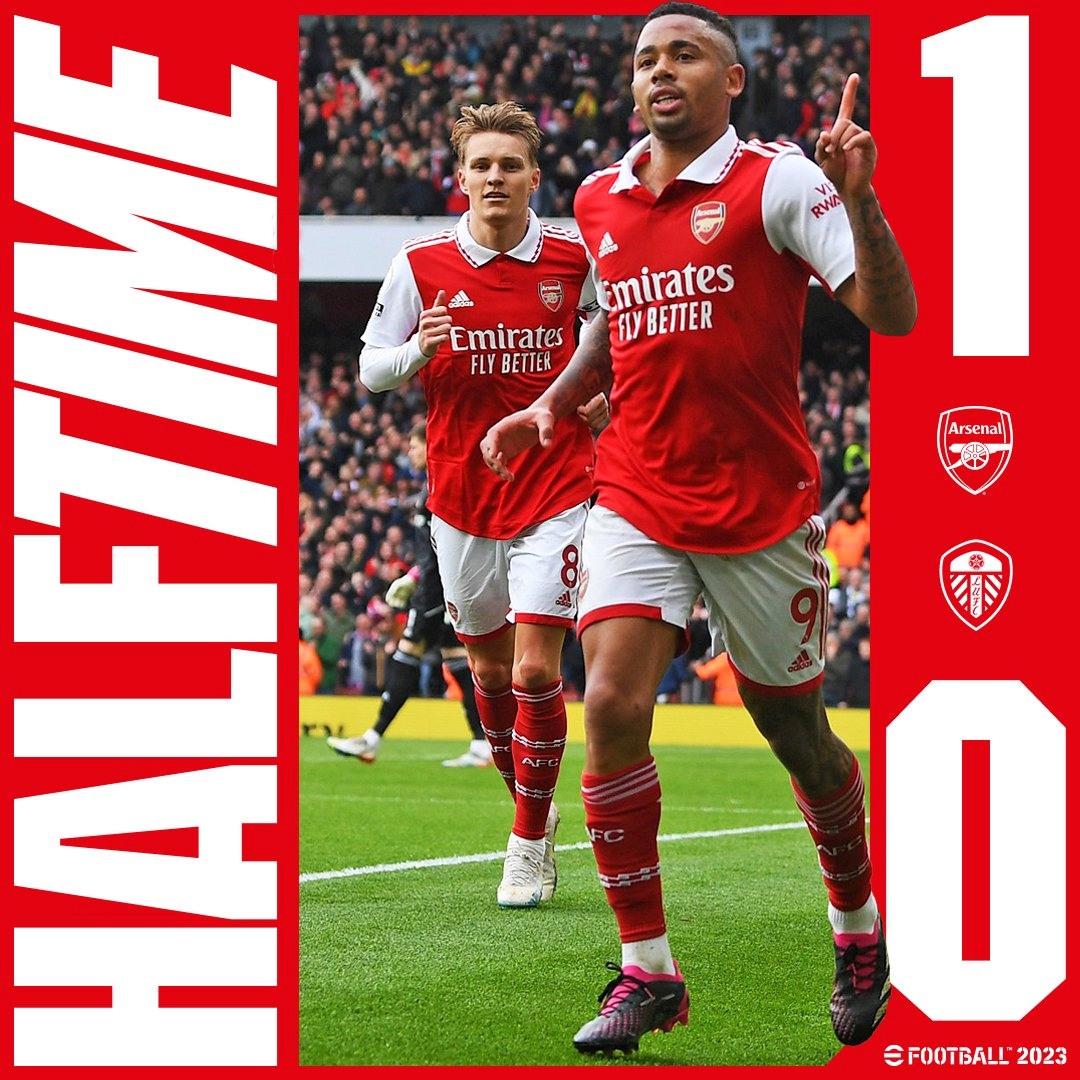 英超第29轮,阿森纳vs利兹联。半场阿森纳1-0领先,热苏斯造点+点射破门。