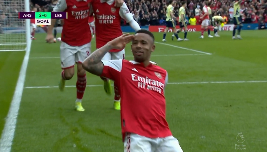 第56分钟,特罗萨德送助攻,热苏斯包抄破门,打入个人本场第二球,阿森纳3-0领先利兹联!